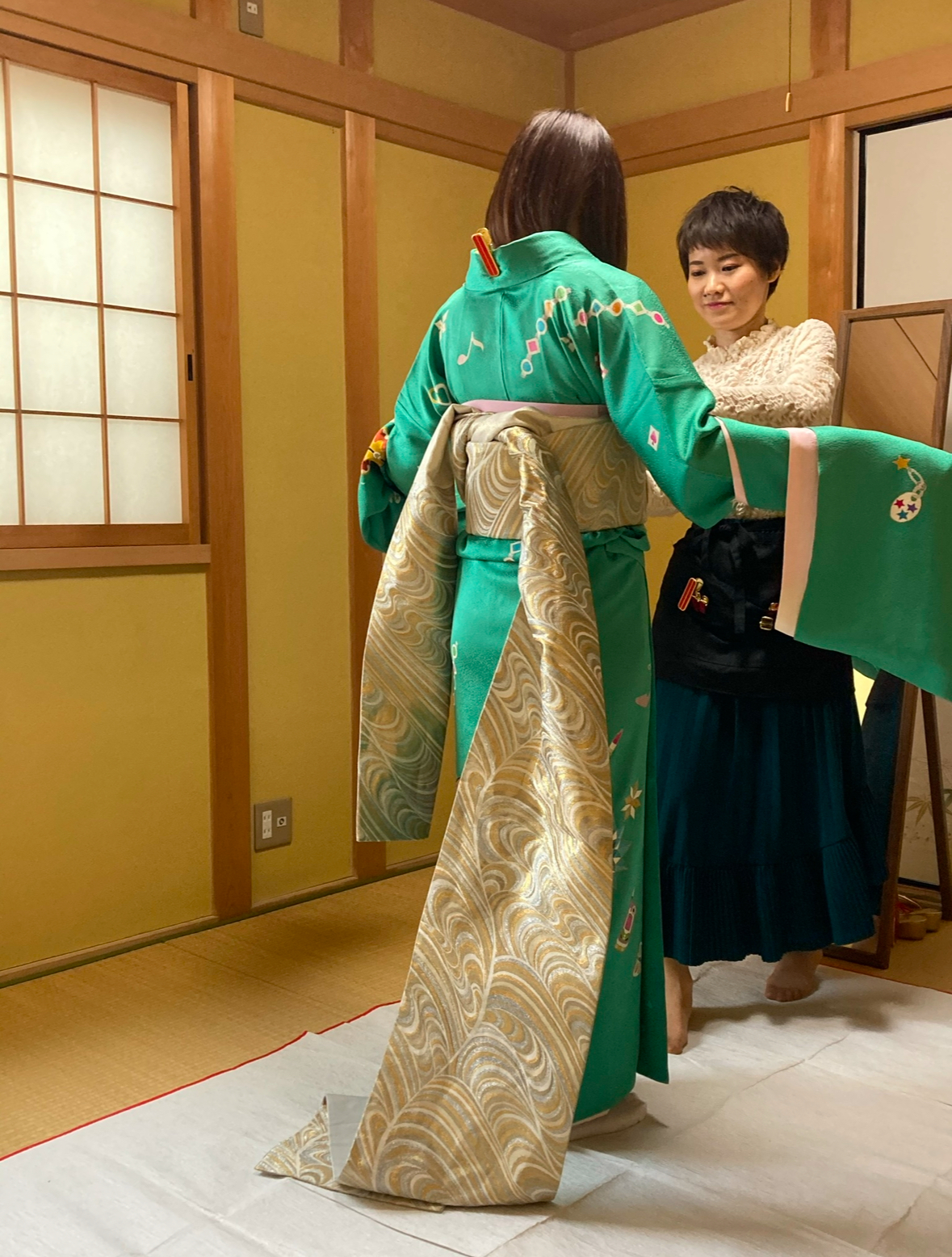 キツすぎると苦しくなりますし、緩くては着崩れします。お客様の骨格に合わせて入念にトレーニングをしております。